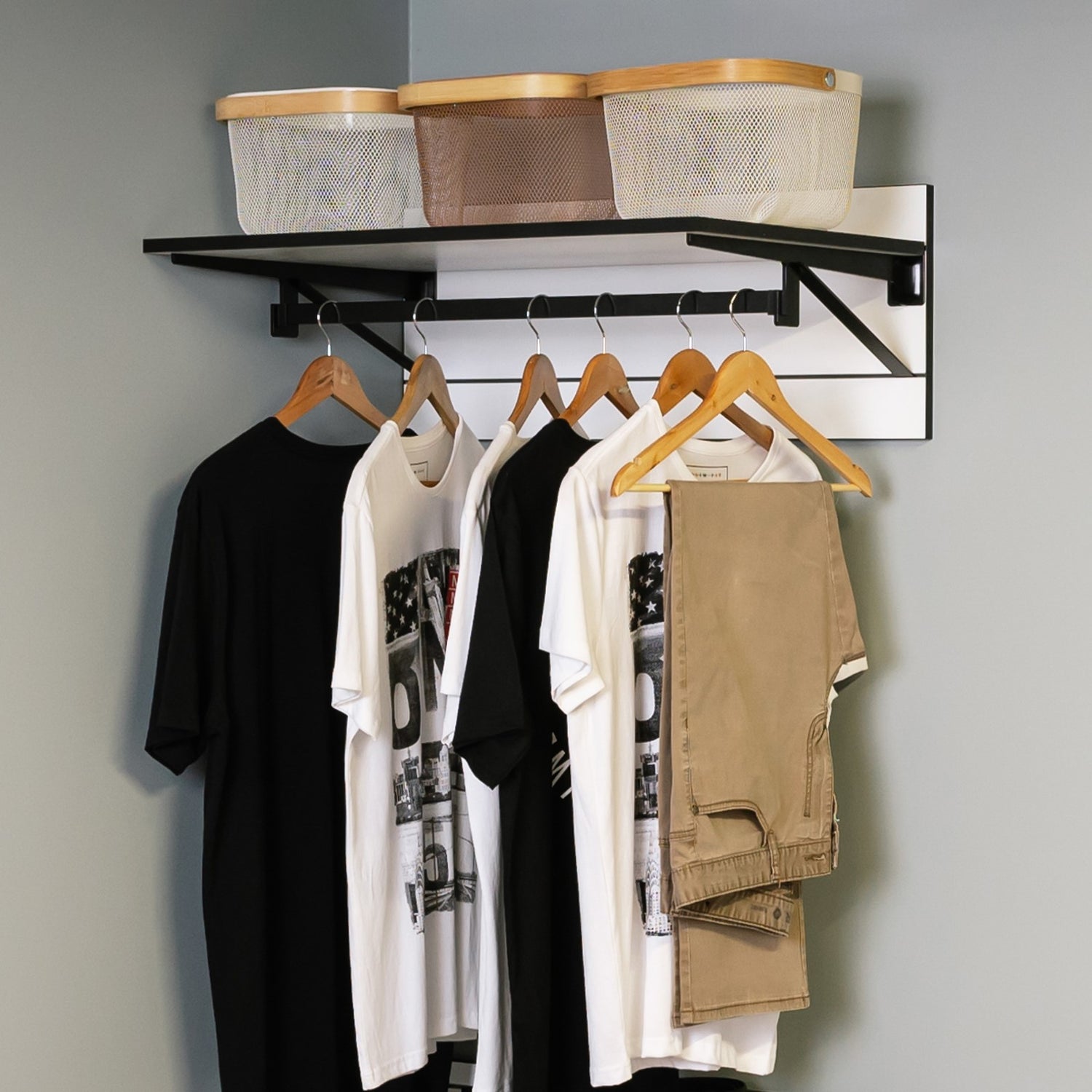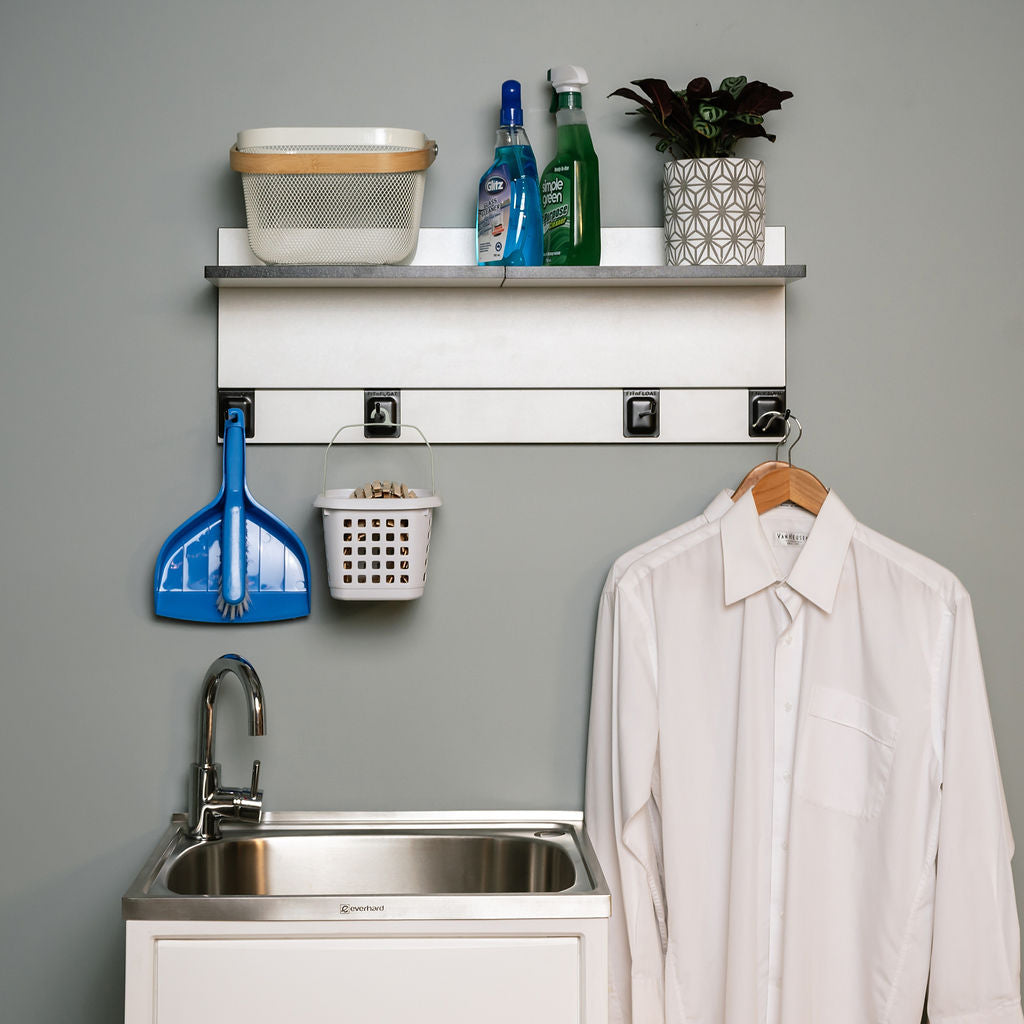 Once mounted on your wall you can choose between shelves, prongs, hooks or rail arms. The combinations are endless.